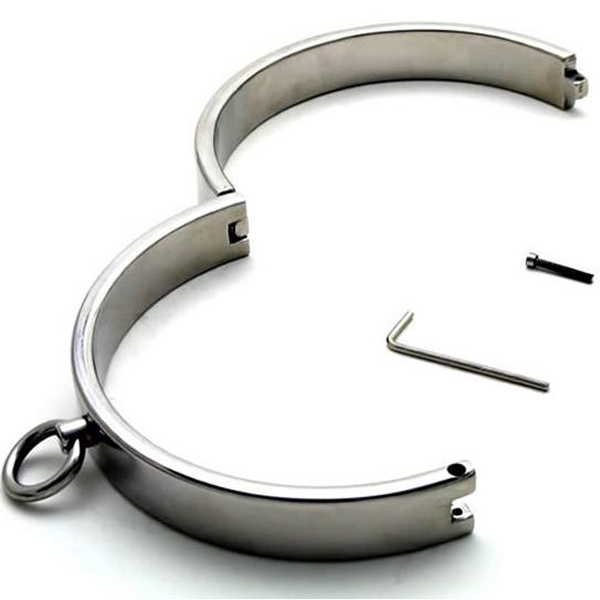 Держите в покорности вашего мужчину вместе с этим металическим ошейником и прочной блокировкой. ошейник изготовлен из нержавеющей стали. К нему прилагается шестигранный ключ. на ошейнике прикреплено кольцо для поводка или цепи. Внутренний диаметр 14,5 см., ширина 2 см., толщина 0,5 см.