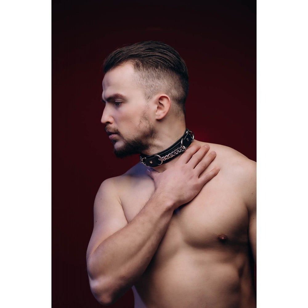 Ошейник с поводком и цепочками из натуральной кожи, мужской, ручная работа, черный