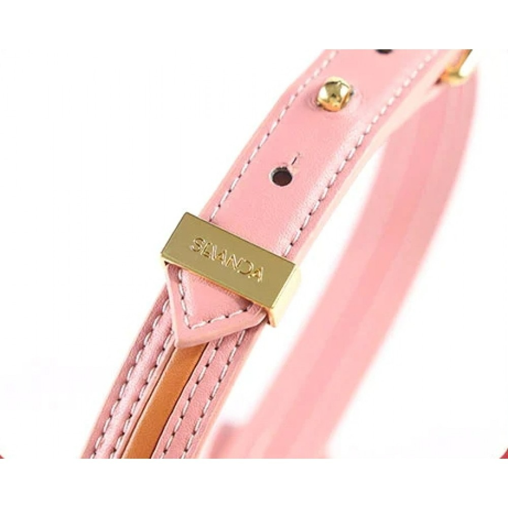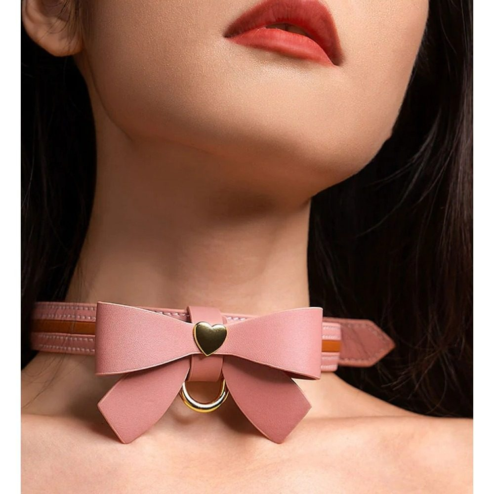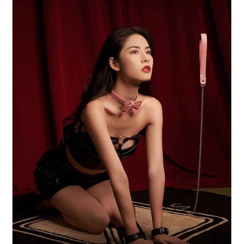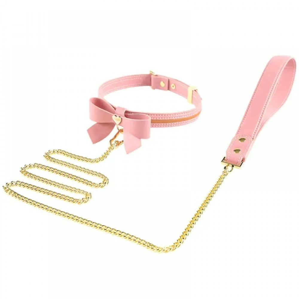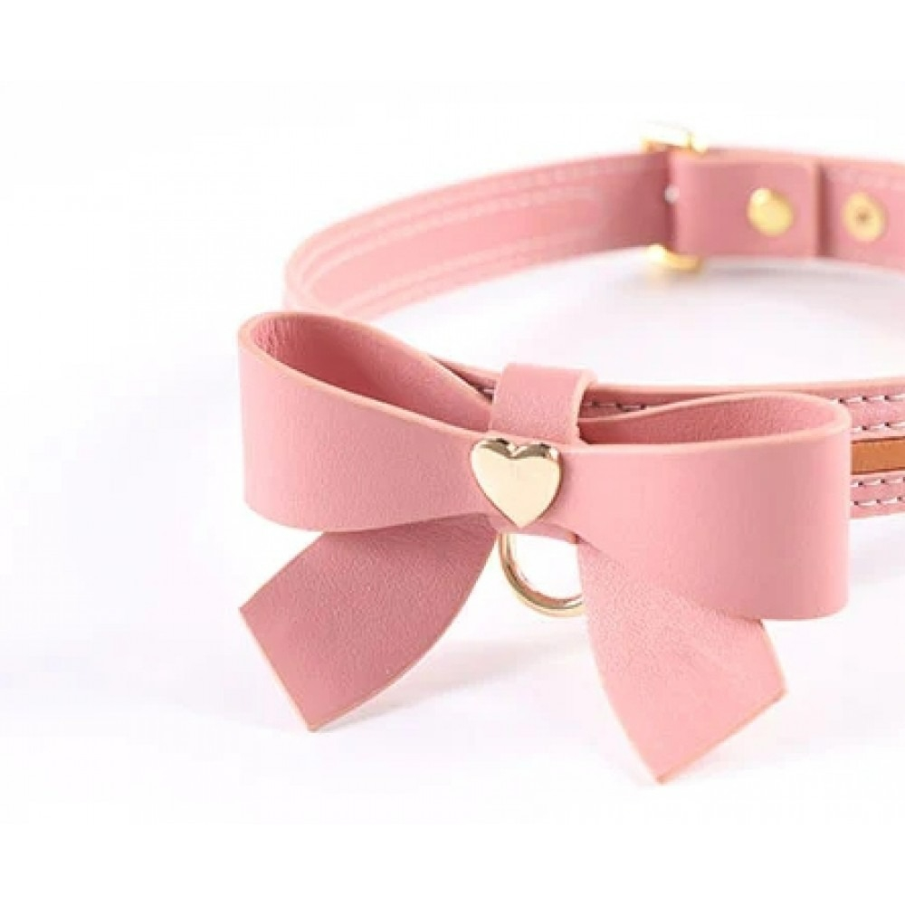 Ошейник с бантиком и поводком Sevanda Lockink, кожа и металл, розовый