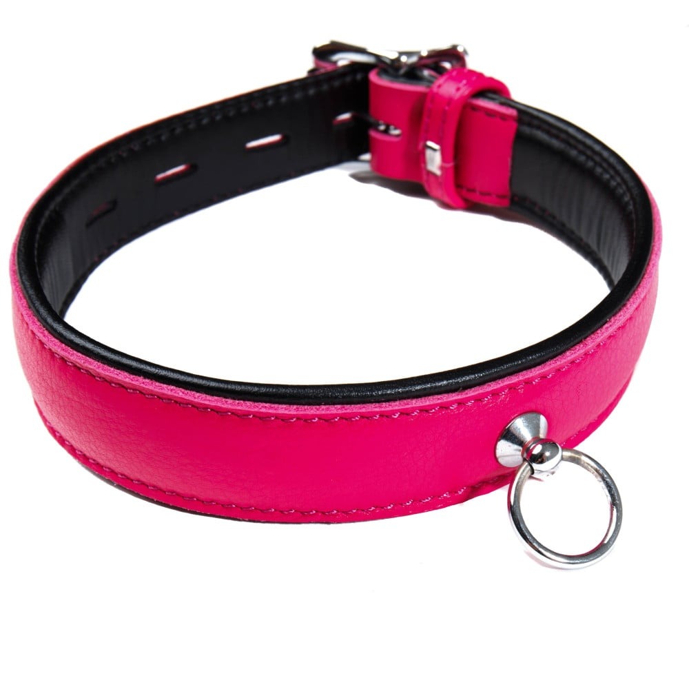 Ошейник кожаный с кольцом DS Fetish розовый (Голландия)