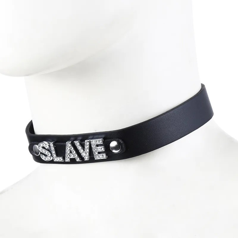 Ошейник с надписью SLAVE БДСМ черного цвета Vscnovelty