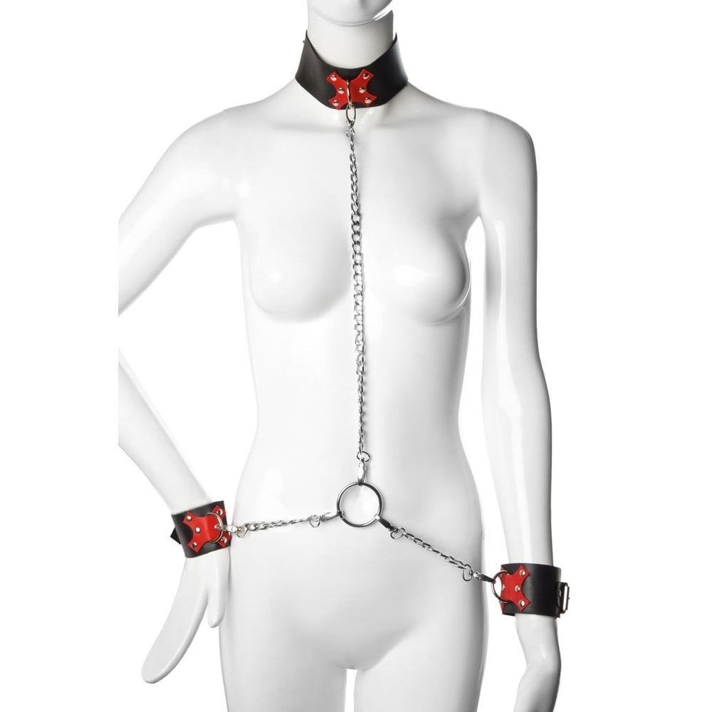 Обеспечьте надежную фиксацию рук вашго партнера используя ошейник с наручниками из натуральной кожи, ручной работы.