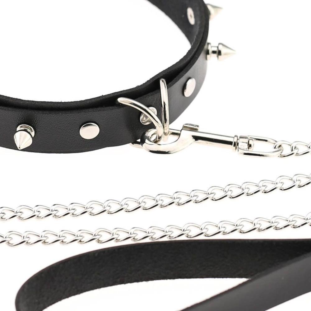 Ошейник с поводком для ролевых игр, выполнен из износостойкого материала. Аксессуар фиксируется при помощи классической застежки, благодаря чему можно отрегулировать размер.