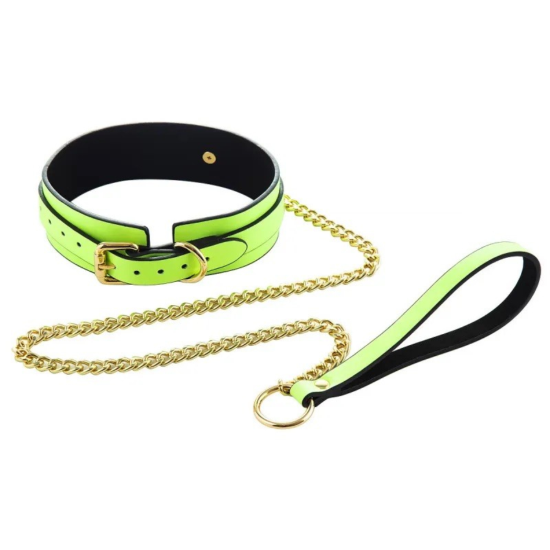 Ошейник с поводком салатовый что светится из искусственной кожи