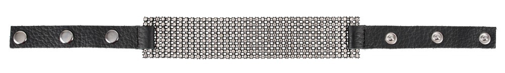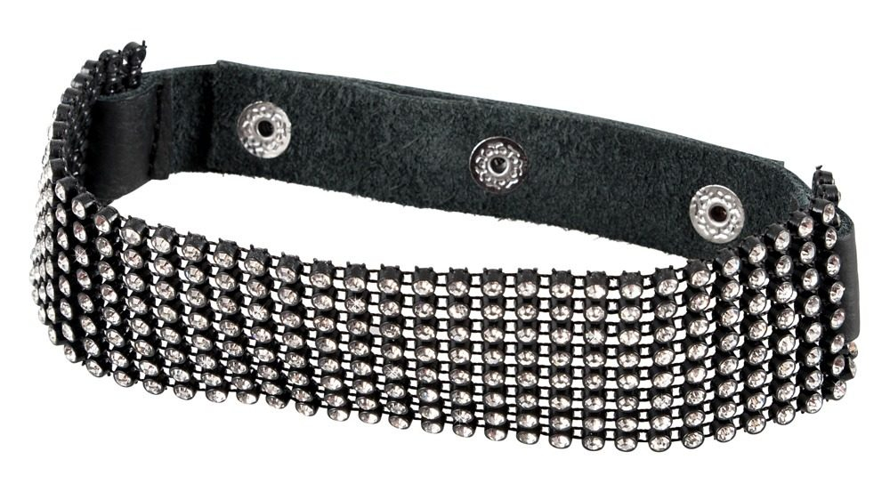 Широкий кожаный ошейник со стразами Choker от черный, 42 х 5.5 см.