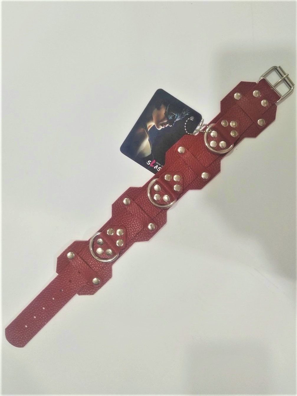 Характеристики Ошейник с заклепками БДСМ из итальянской натуральной кожи красного цвета Foxshow Vip