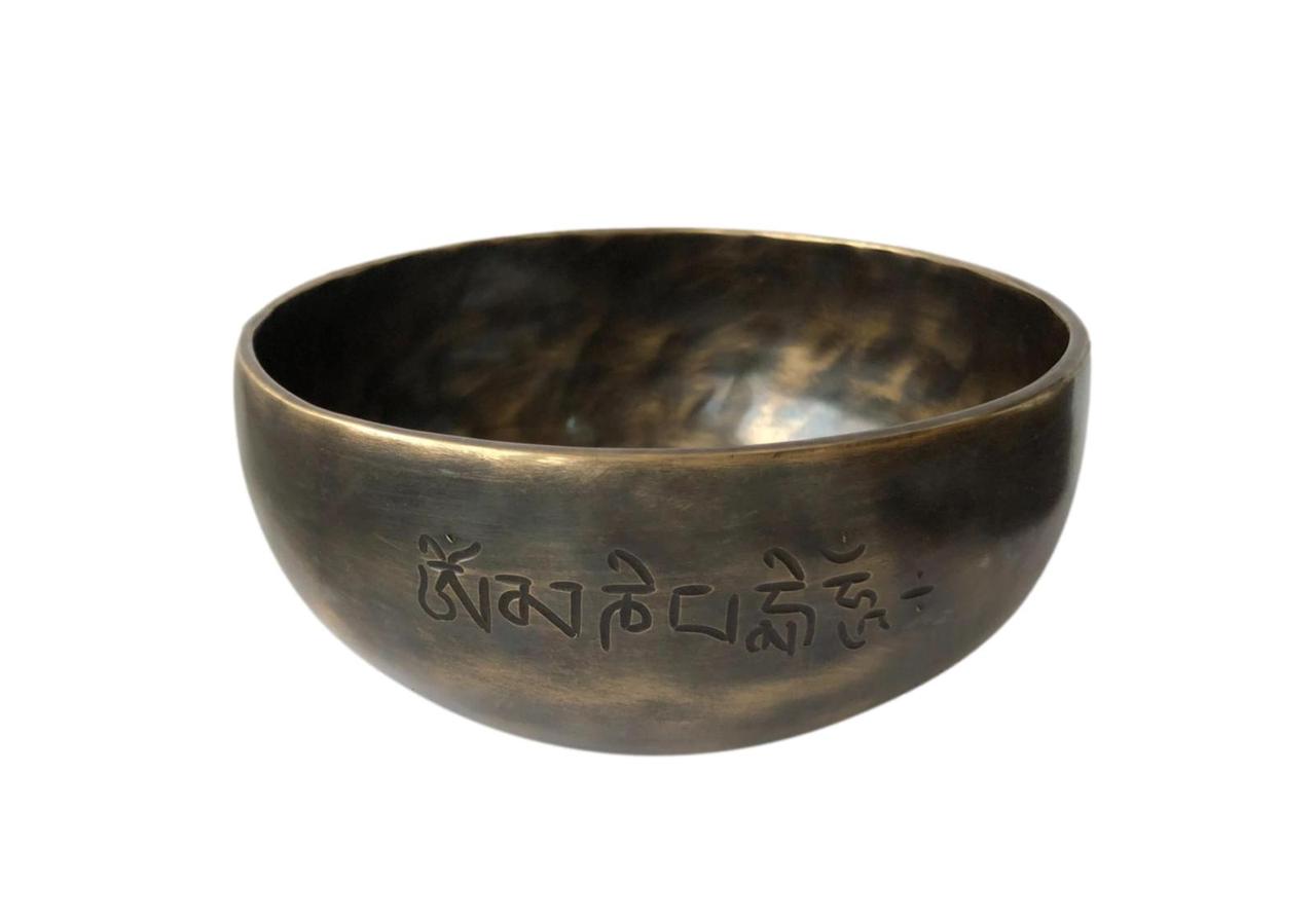 Тибетская поющая чаша Tiger Eye с резьбой мантры (D 15 см)