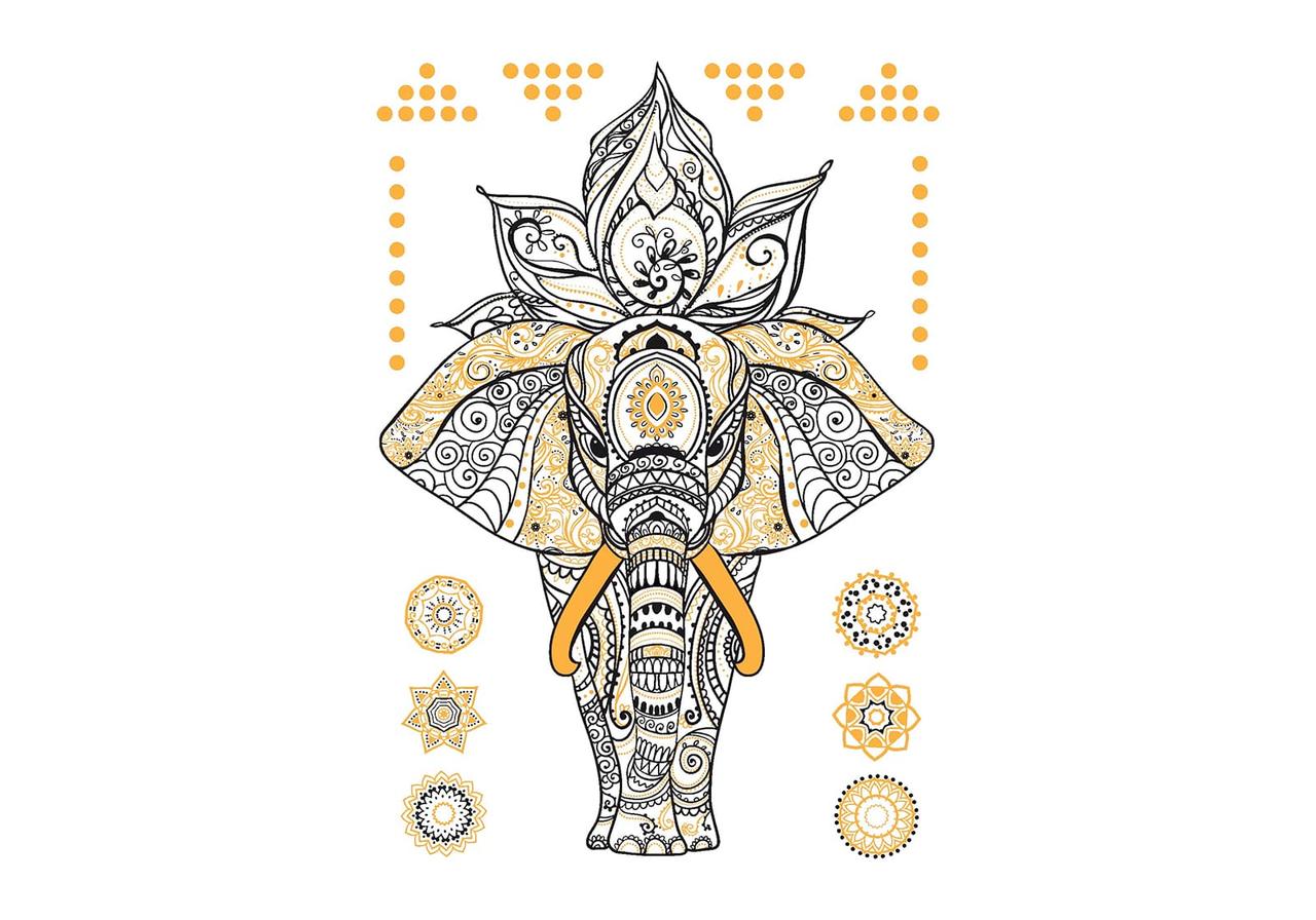 Временное переводное тату в цвете Слон и мандала ArleySign 145х205 мм