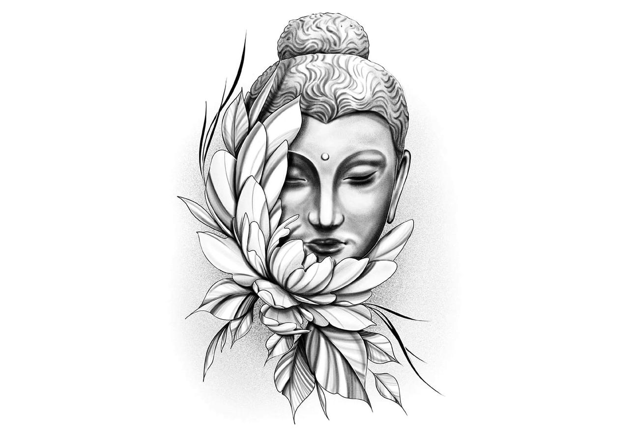 Временное переводное тату Цветок Будды ArleySign 145х205 мм