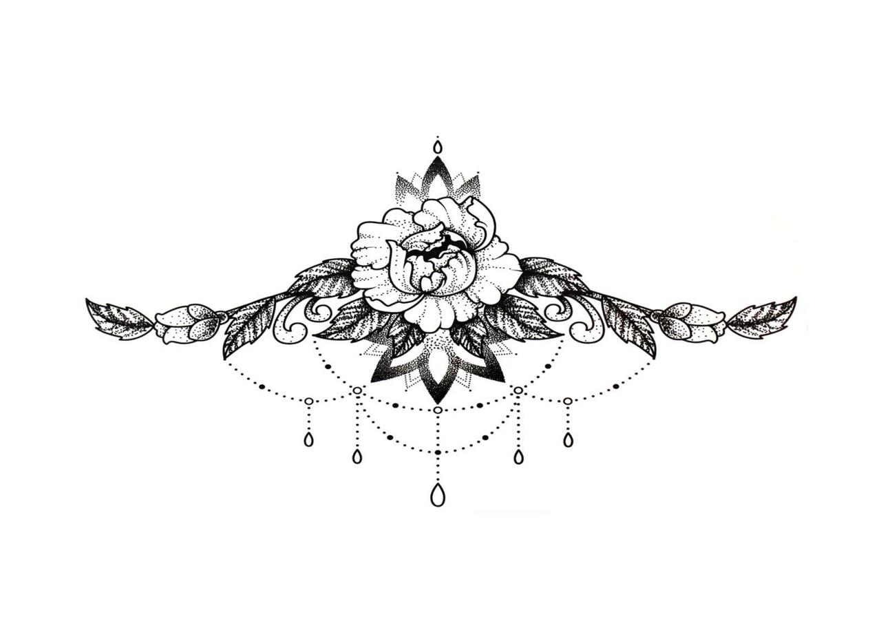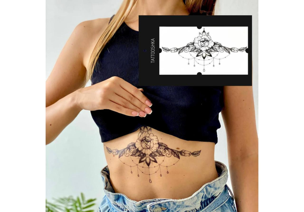 Временное переводное тату под грудь Мандала и Лотос Tattoshka 230x140 мм