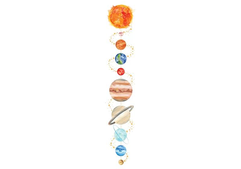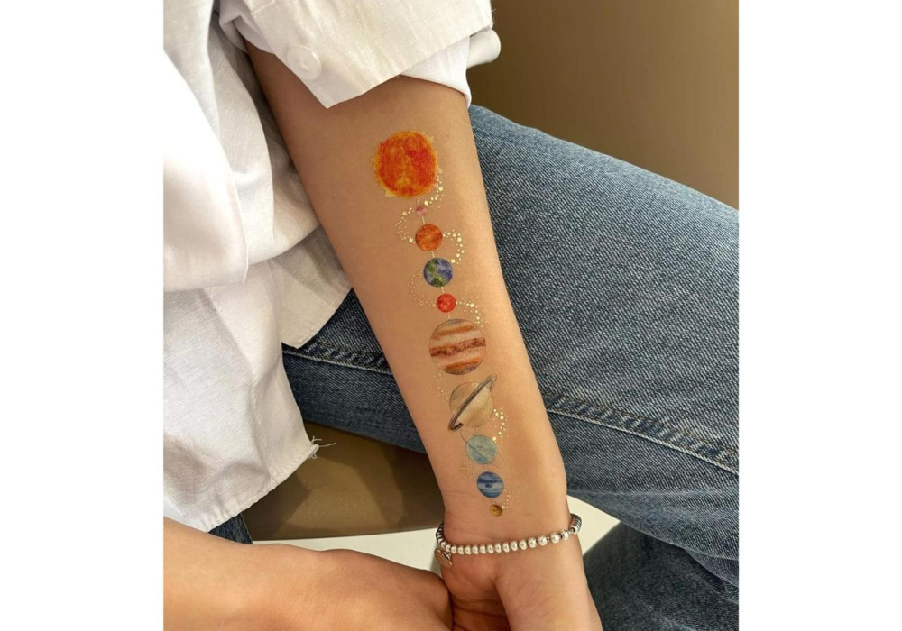 Временное разноцветное переводное тату Парад планет ArleySign 55x165 мм