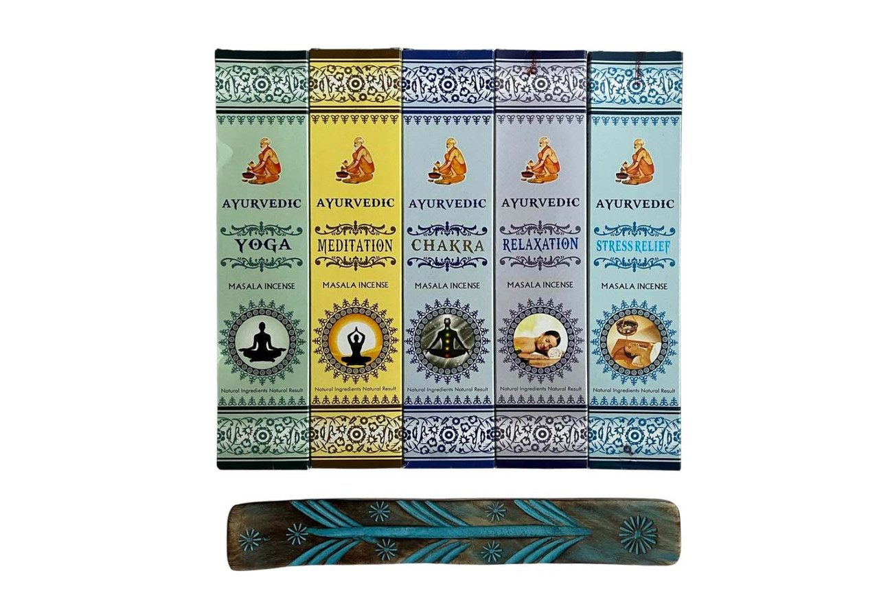 Аромапалочки (набор) Ayurvedic Premium Yoga Power 5 шт с подставкой