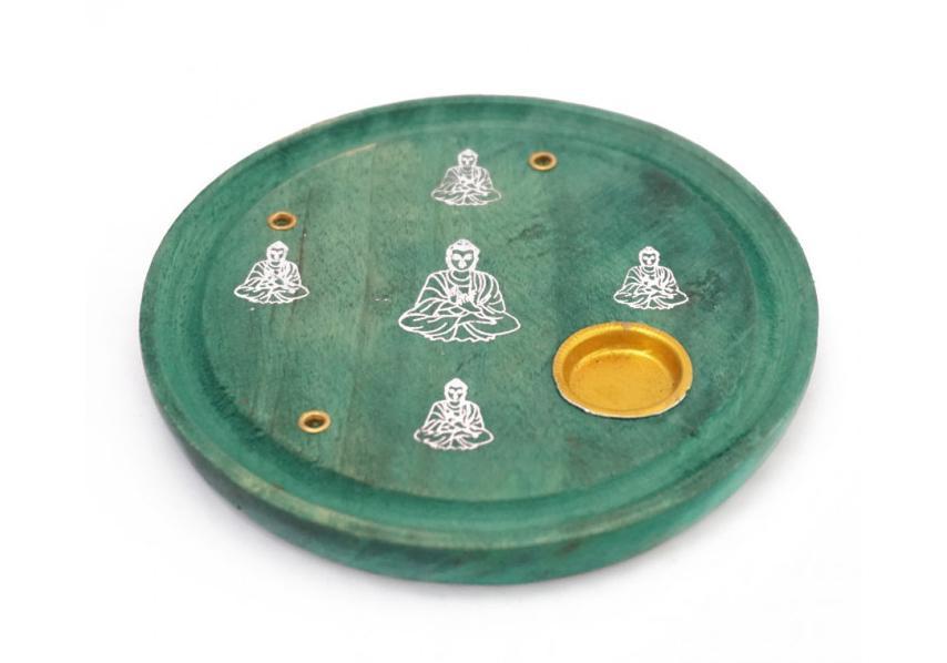 Подставка под благовония Тарелка Будда 10x10x1 см зеленая