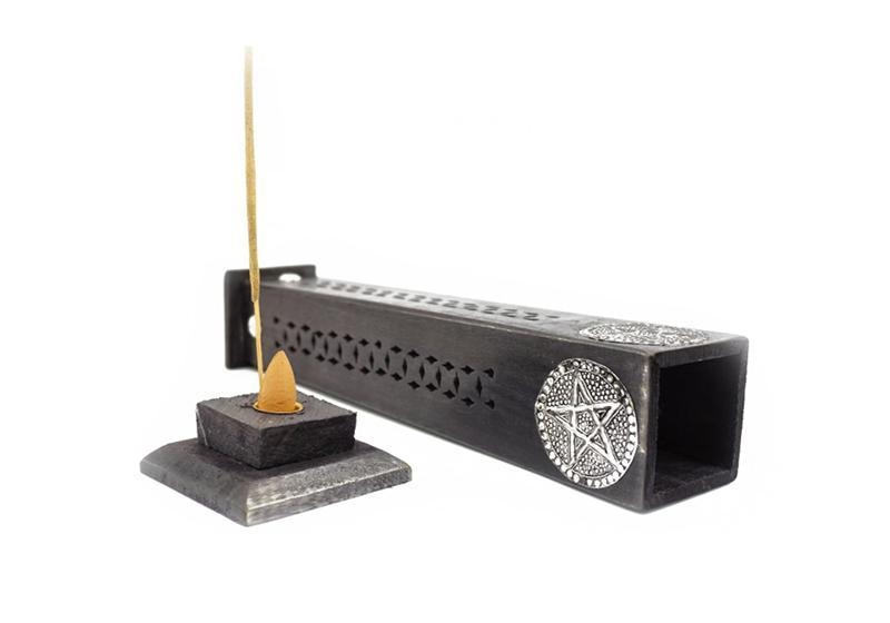 Подставка под благовония Башня Пентакль из дерева манго черная 31х7.8х7.8 см