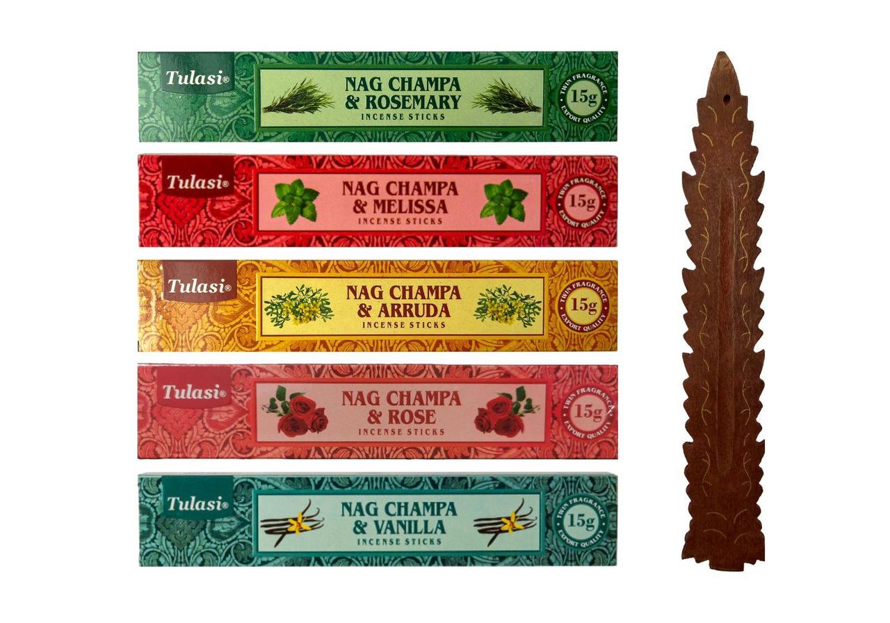 Аромапалочки (набор) Relaxing Nag Champa Tulasi 5 шт с подставкой