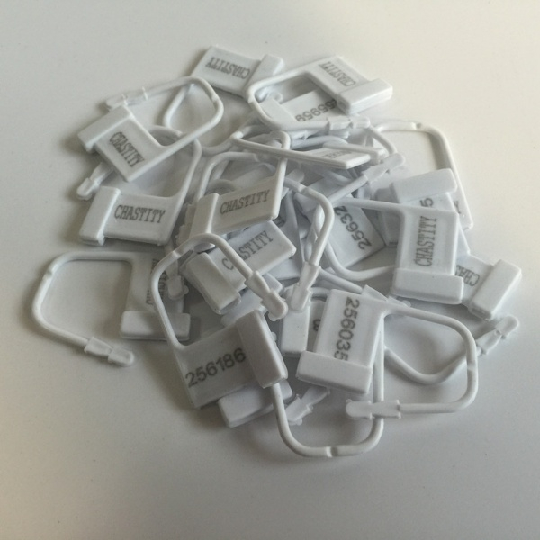 Используйте эти пластиковые пронумерованные замки вместо обычных замочков. Это означает, что вы можете легко узнать, пытается ли ваш партнер манипулировать устройством целомудрия. Эти пронумерованные замки блокировки - одноразовые, пронумерованы и не могут быть повторно использованы. Такие замки идеально подходят для силиконовых или пластиковых клеток. Они так же легкие и водонепроницаемые.