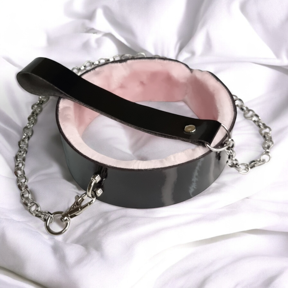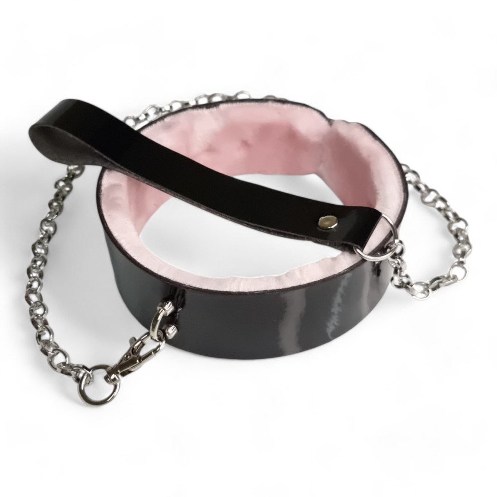 поводком с розовым мехом с ЭКО лака Flirty