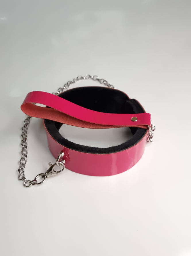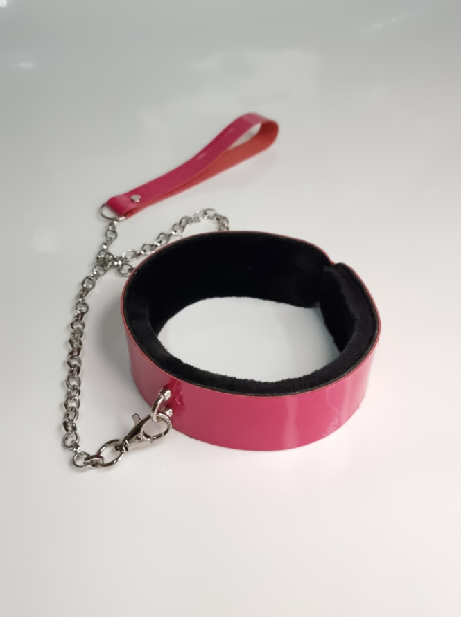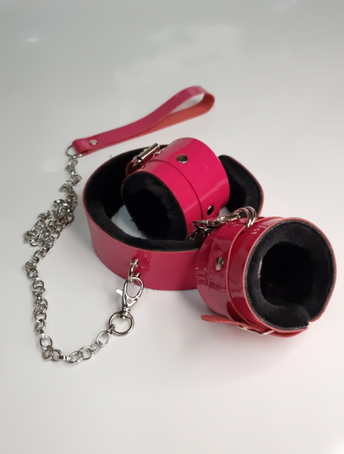 Подарочный набор для фиксации наручники и ошейник с поводком из эко лака малинового цвета Flirty Collection