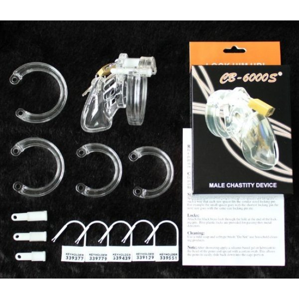 Размеры корпуса пояса верности: длина — 7 см, внутренний диаметр корпуса — 3,5см. Размеры колец: 3,8 см, 4,1 см, 4,5 см, 4,75 см, 5 см. Пояс верности CB 6000S — это уменьшенный вариант модели CB 6000 (длина CB 6000 S составляет 6,4 см, а CB 6000 — 8,3 см). У двух популярных моделей поясов целомудрия различаются лишь размеры, в остальном они идентичны. Вы сможете ограничить доступ к гениталиям своего партнера, надев на него пояс верности CB 6000S. Его жизнь ничем не изменится, вот только он не сможет прикасаться к своему пенису, а эрекция будет заблокирована. Заберите ключи от CB 6000S и оставьте жертву полностью под своим контролем!CB 6000S подходит не только для сессионных игр, но и для постоянного ношения. Высококачественный пояс верности абсолютно безопасен для организма и не вызывает дискомфорта даже при постоянном ношении. CB 6000S имеет отверстия для гигиены, вентиляции и мочеиспускания.Теперь пояс целомудрия имеет классический корпус CB 6000S. Кольца корпуса выполнены из взаимосвязанных элементов, которые при одевании составляют нечто типа паззлов. Пояс верности состоит из трех основных деталей, которые защелкиваются и образуют конструкцию CB 6000S. Кольца одеваются очень просто и быстро благодаря шарнирным соединениям. В каждом комплекте CB 6000S поставляется с пятью различными по диаметру кольцами, так что этот пояс верности подойдет для всех размеров.Скрепляющие элементы (кольцо и корпус) соединяются вверху, где их фиксирует небольшой латунный замок. Блокировка пояса верности проходит через центральное отверстие и соединяет кольцо с корпусом CB 6000S. Пояс верности не имеет металлических деталей, так что при использовании пластиковых замков носитель может без проблем проходить через металлодетекторы. Каждый пластиковый замок имеет индивидуальный серийный номер.Фиксирующее кольцо имеет плоскую конструкцию, что делает пояс верности абсолютно безопасным и очень удобным: носителю не придется ощущать дискомфорт либо боль. CB 6000S отлично подойдет не только для сессионных игр, но и для постоянного ношения. Пояс верности 6000S изготовлен из высококачественного гипоаллергенного медицинского поликарбоната, полностью безопасного для здоровья. Материал легкий, просто очищается, а также невероятно прочный.Комплектация товара: Комплект CB 6000S включает в себя: непосредственно пояс верности CB 6000S, пять колец различных размеров, пять пластиковых замков (которые помогут носителю пояса верности без проблем проходить через металлодетекторы), один латунный замок, ключ, четыре штифта разной длины, четыре пластиковых распорки разной длины, а также удобный черный чехол на молнии.О производителе: Компания CB 6000 начала свое развитие с нового подхода к мужскому целомудрию. Данный бренд является мировым лидером современных мужских поясов верности уже не один год. Все модели CB 6000 обеспечивают комфорт, безопасность и длительный срок износа. Приоритетами бренда всегда являлись инновации в производстве секс-игрушек и высокое качество продуктов. Компания CB 6000 создала настоящую революцию в интимной индустрии, впервые создав столь комфортные и безопасные в использовании пластиковые пояса целомудрия для мужчин.
