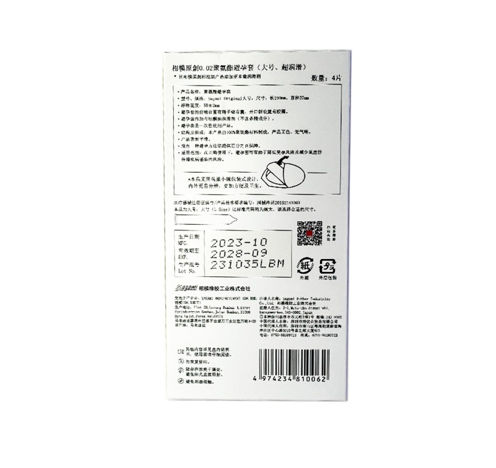 Презервативы Sagami Original размера 0,02 L (2-го поколения) имеют толщину всего 0,02 мм и не содержат латекса. Точно такой же презерватив, как Sagami Original, но шире и длиннее.