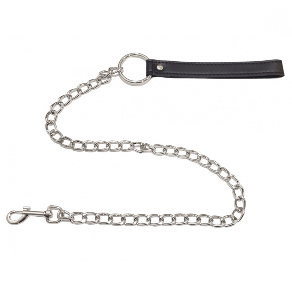 Поводок имеет элегантный дизайн с прочной металлической цепочкой и ремешком из качественного кожзама.