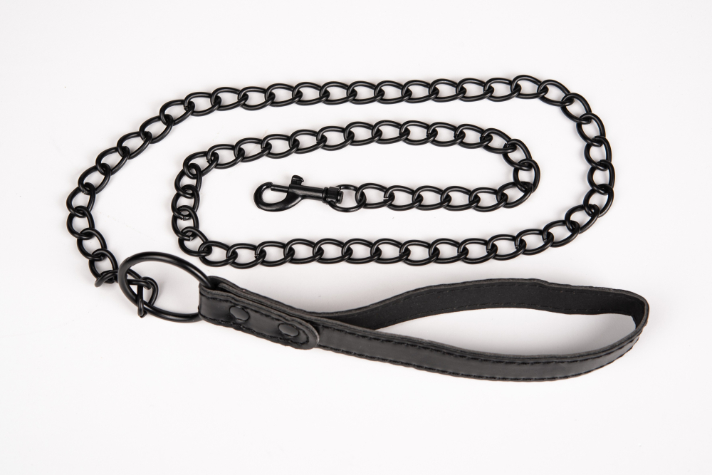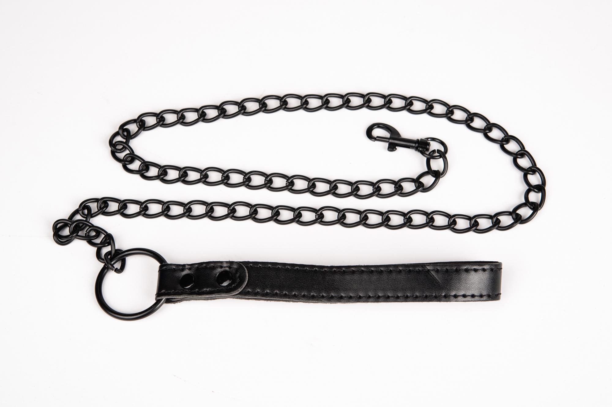 Поводок для ошейника БДСМ на цепочке с черной кожаной ручкой JSY