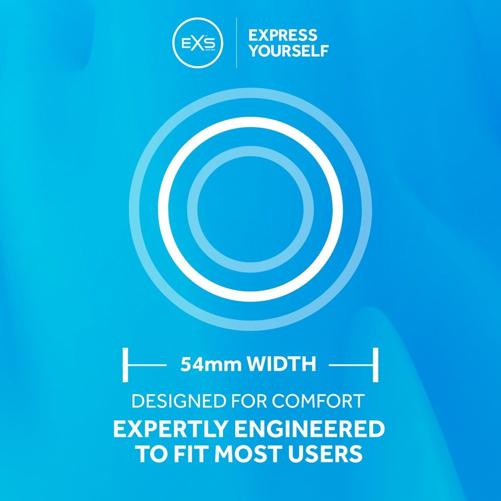 Презервативы имеют номинальную ширину 54 мм у стержня, которая расширяется до 65 мм у головки, и длину 194 мм. Эта удобная форма обеспечивает лучшую посадку и идеальна для мужчин с немного большим пенисом. Эти презервативы, изготовленные из натурального латекса , гарантируют безопасность и качество.