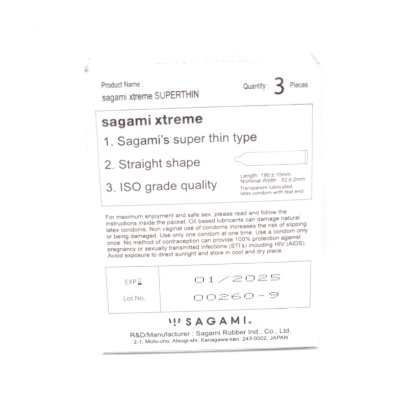Латексные ультратонкие презервативы Sagami Xtreme Superthin. Передовые технологии, позволили изготовить презервативы почти в два раза тоньше стандартных аналогов. Ультратонкая толщина стенок (0,04 мм) этих латексных презервативов делает их использование более комфортным и незаметным и способствует большей естественности ощущений.