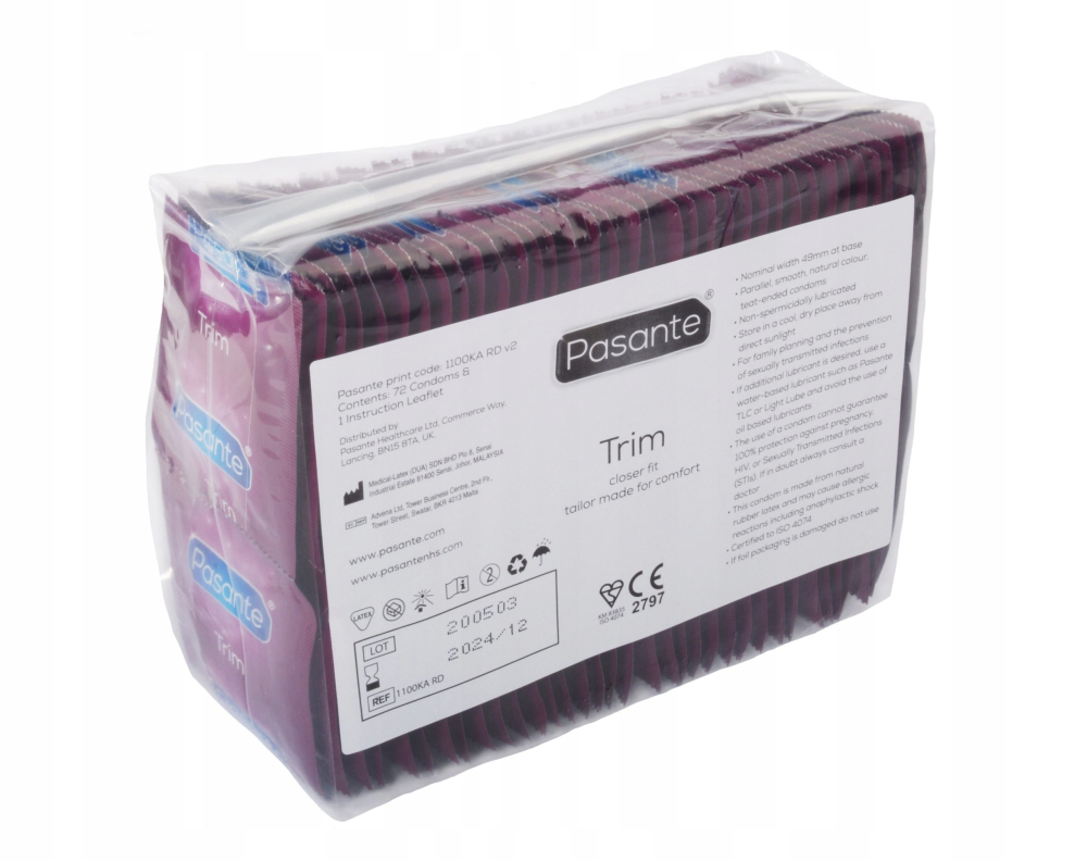 Презервативы уменьшенной ширины из натурального латекса прозрачные Рasante Trim 72 штуки