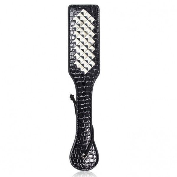 Прямоугольная шлепалка с заклепками черная для БДСМ