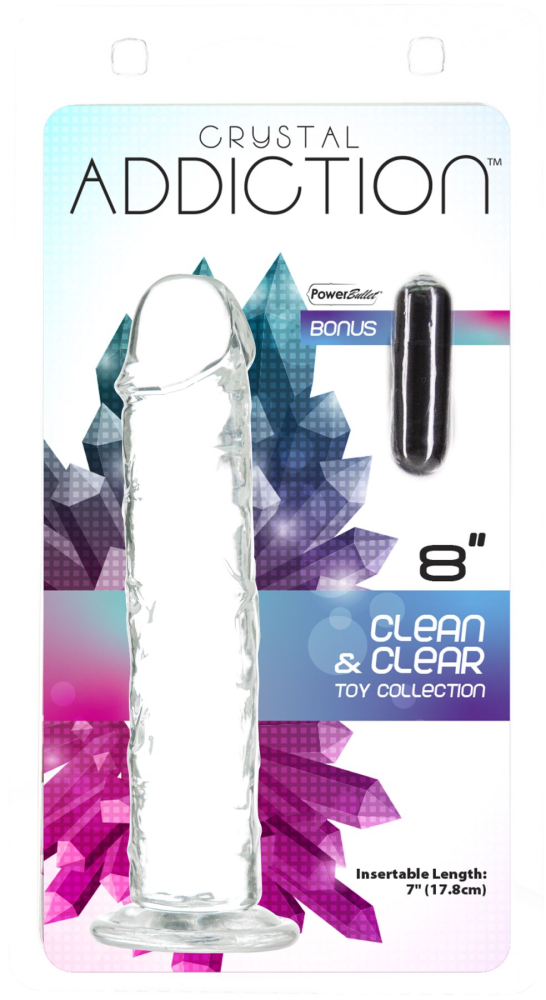 Характеристики Фаллоимитатор реалистичный на присоске прозрачного цвета с вибропулей в комплекте Addiction Vertical Dong