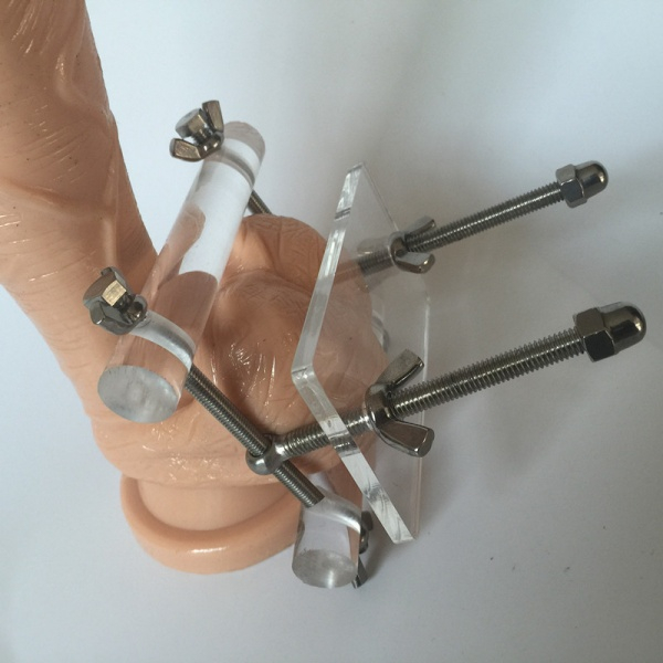 Прозрачный фиксатор на пенис с металлическим креплением сделан специально для эротических пыток. Примечание: будьте осторожны, так как неправильное использование этого прибора может привести к травме.