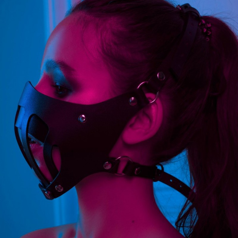 Сексуальная кожаная маска намордник БДСМ черная