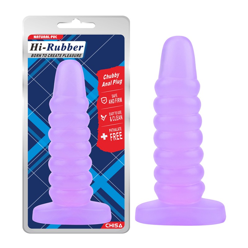 Характеристики Анальная ребристая пробка на присоске фиолетового цвета Chisa Hi Rubber