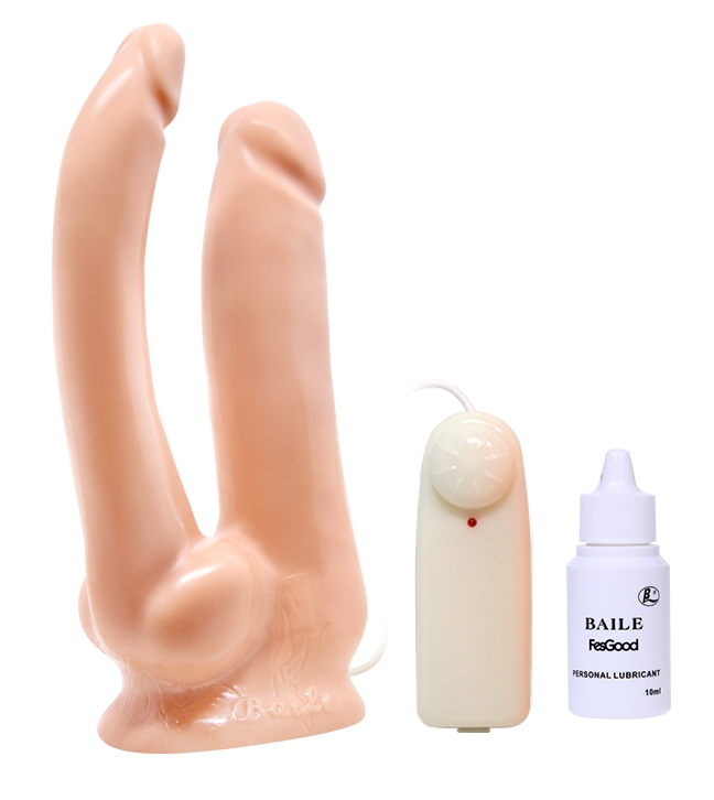 Вибратор телесного цвета для двойного проникновения, поможет разнообразить интимные игры с партнером.