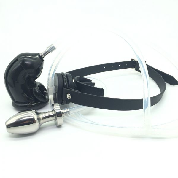 Пояс верности для мужчин с уринальной системой соедененной с кляпом черный OXBALL RECYCLER