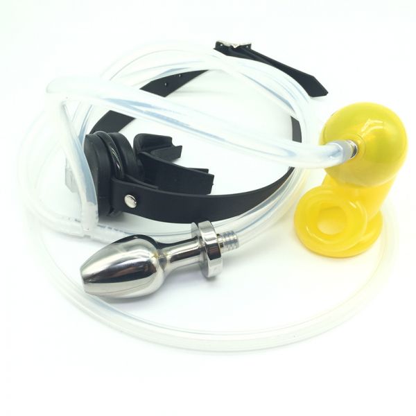 Характеристики Уринальная система пояс верности соедененный трубками с кляпом для рта и анальной пробкой с ответствием желтого цвета Bdsm4u Recycler Oxball