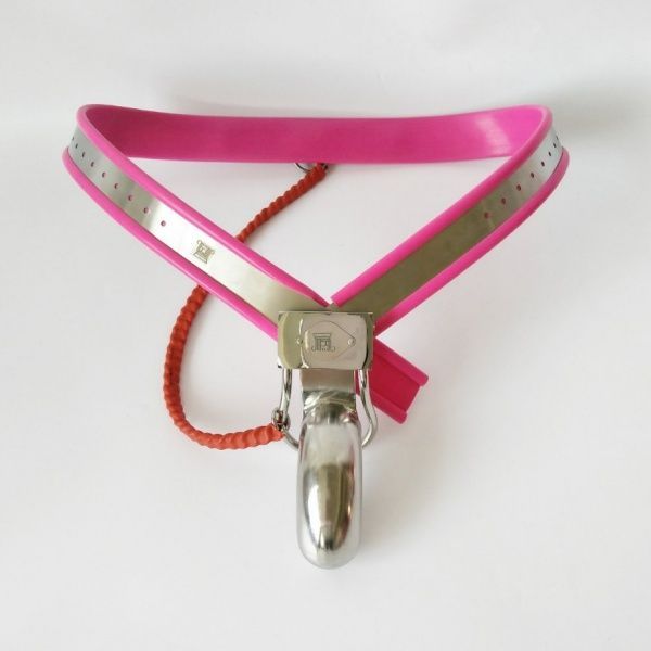 Розовый мужской пояс верности. Розовое мужское устройство целомудрия сделано из высококачественного материала. Интересный дизайн. Размеры: талия регулируется в пределах 65-110.
