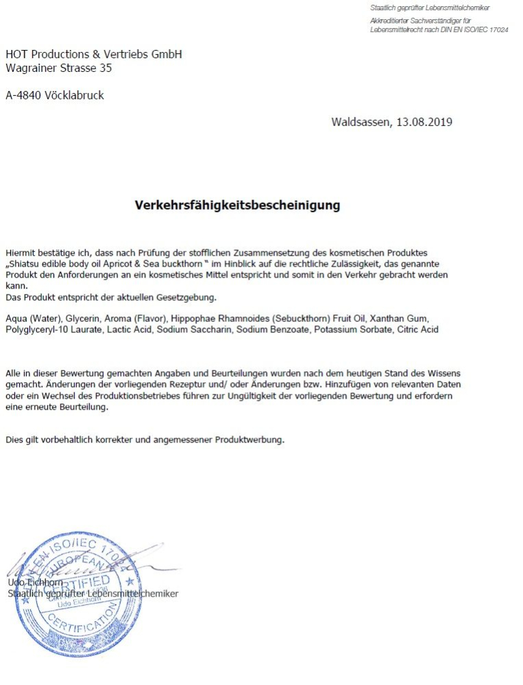 Съедобное масло для тела SHIATSU Абрикос и Облепиха, 75 мл