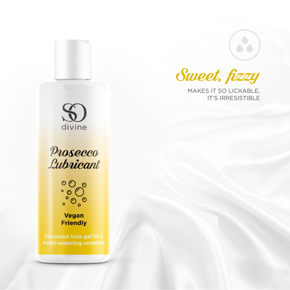 Нанесите лубрикант So Divine со вкусом просекко на интимные зоны и вы будете готовы целовать и ласкать друг друга всю ночь напролет.