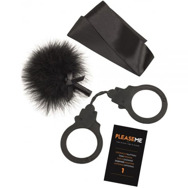 В набор входят: лента для глаз, которой так же можно связывать перо для щекотки наручники