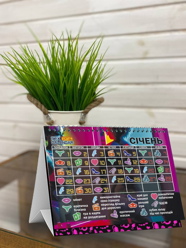 Предлагаем купить SEX КАЛЕНДАРЬ-2024 — обновленный календарь для ваших лучших эротических приключений! Крутой и горячий, он легко привнесет перчинку в вашу близость. SEX КАЛЕНДАРЬ-2024 еще интереснее, чем календарь за 2023 год. Во-первых, календарь выполнен в новом уникальном дизайне — никаких повторов, только актуальное оформление! Во-вторых, вместо текста в нем используются иконки — условные обозначения активностей (с расшифровкой), что делает календарь более ярким. И, в-третьих, в нем есть еще больше идей для эротического досуга.