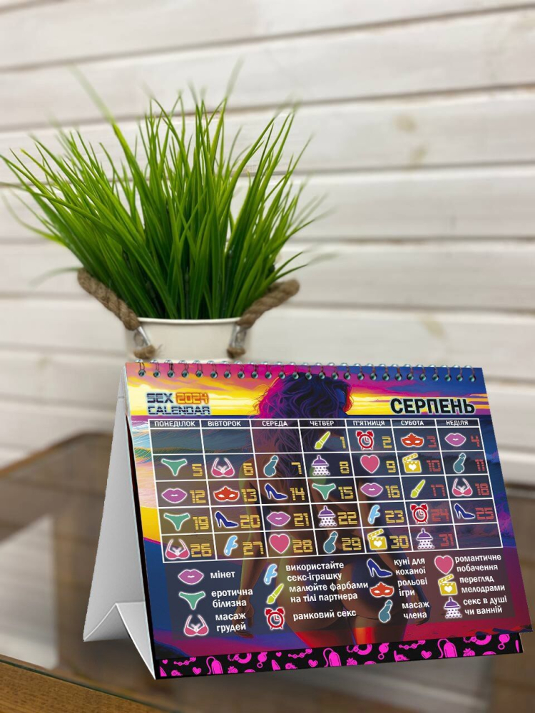 SEX КАЛЕНДАРЬ станет приятным сюрпризом для партнера или партнерши, а также — милым дополнением к свадебному подарку либо презентом на девичник или мальчишник. В этом году — новое оформление, прикольные иконки и еще больше идей для вашей сексуальной жизни.
