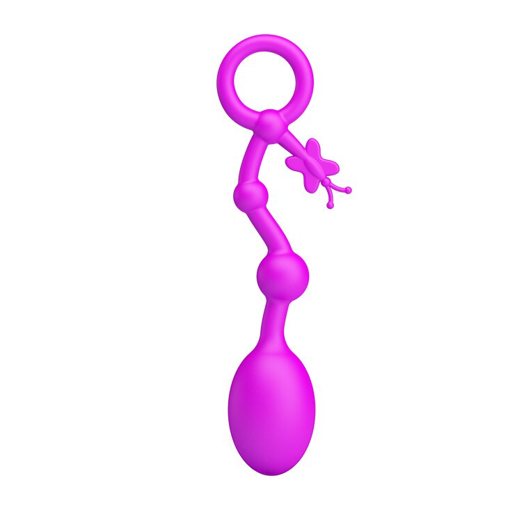 Шарики выполнены из медицинского силикона и снабжены петлей для удобного извлечения.Бусины имеют разный диаметр. Удобное кольцо позволяет использовать изделие максимально комфортно и безопасно. Кольцо украшено бабочкой. Игрушка гибкая, непористая.
