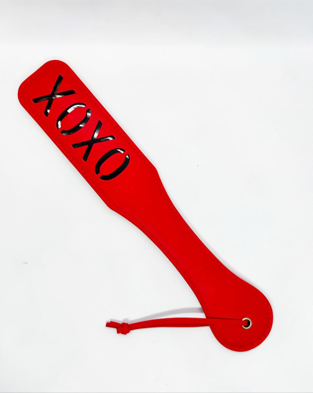 Шлепалка БДСМ с надписью Хохо красного цвета DS Fetish Хохо Paddle round angle red