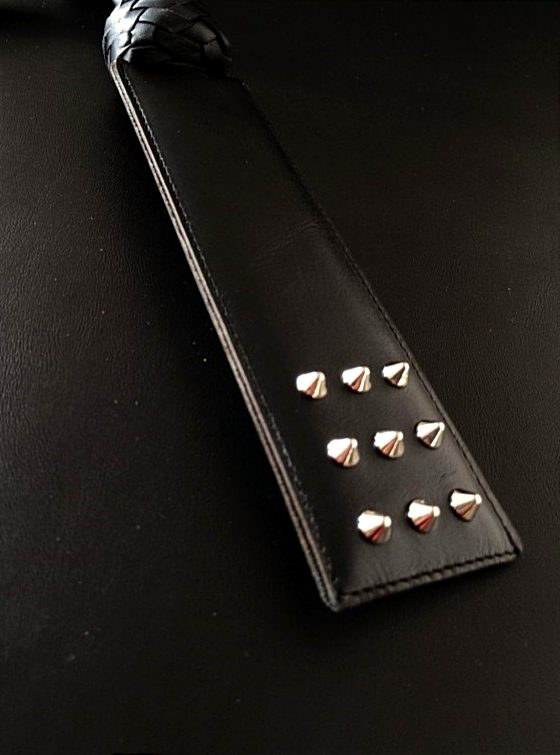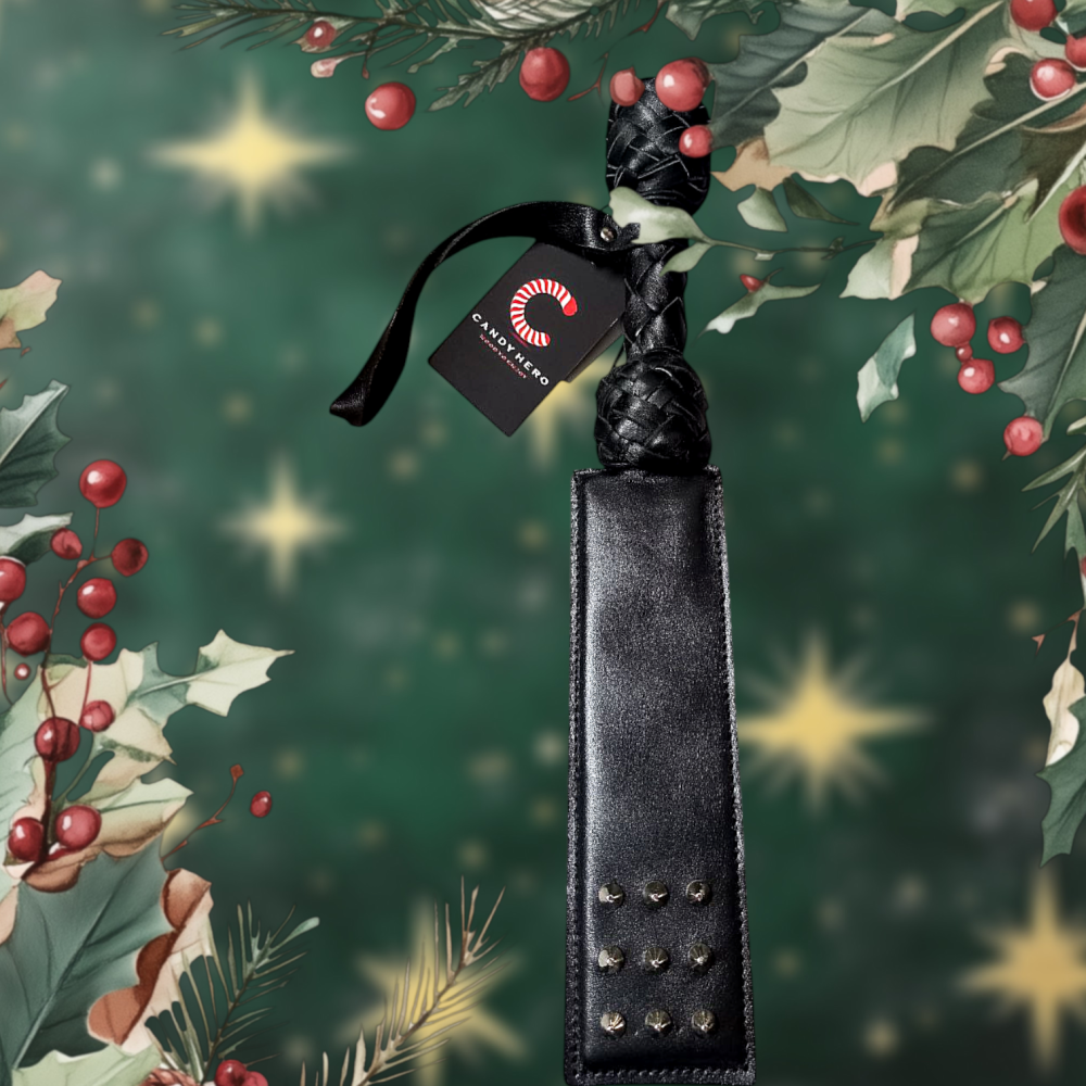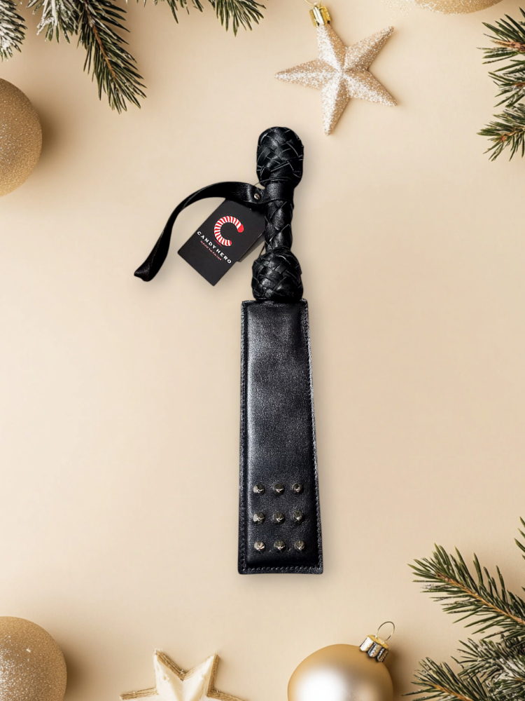 Шлепалка с шипами Candy Hero, кожа, ручная работа, черный