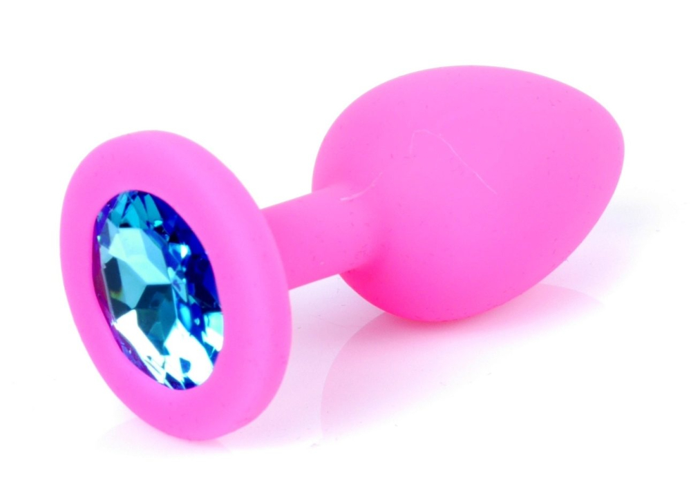 Анальная пробка М розового цвета с кристаллом голубого цвета BOSS of TOYS Jewellery plug