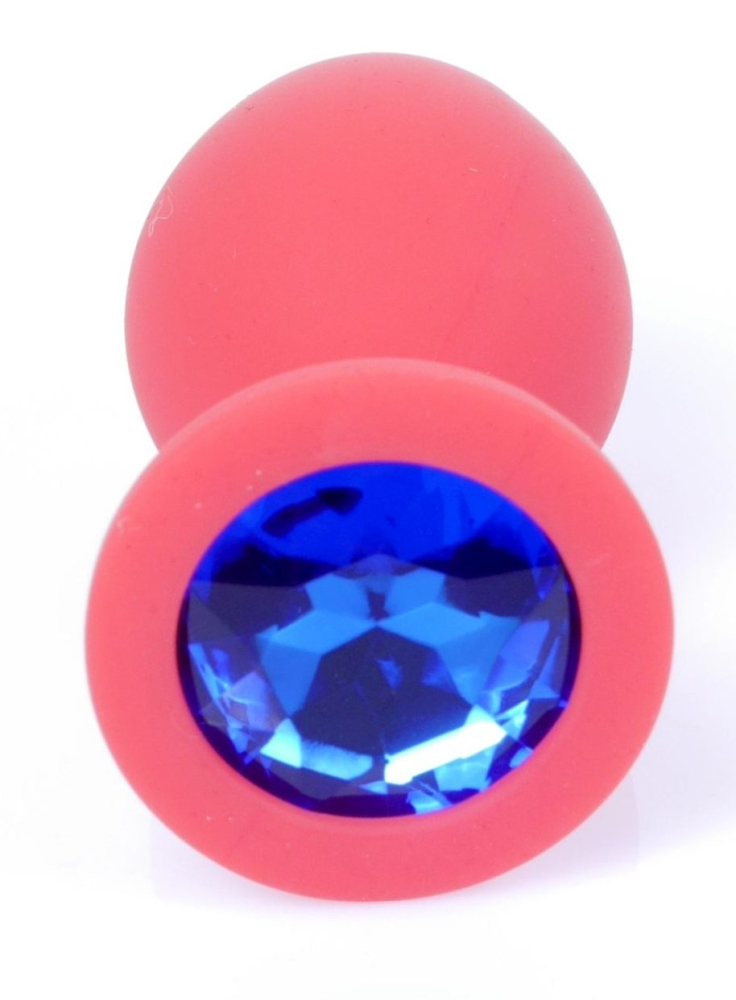 Анальная пробка S красного цвета с кристаллом синего цвета BOSS of TOYS Jewellery plug