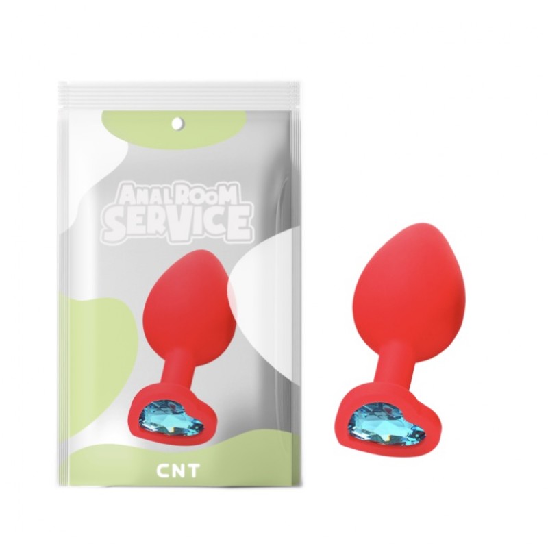 Характеристики Анальная пробка силиконовая красного цвета с голубым камушком в форме сердца Cnt Love Diamond размер Medium