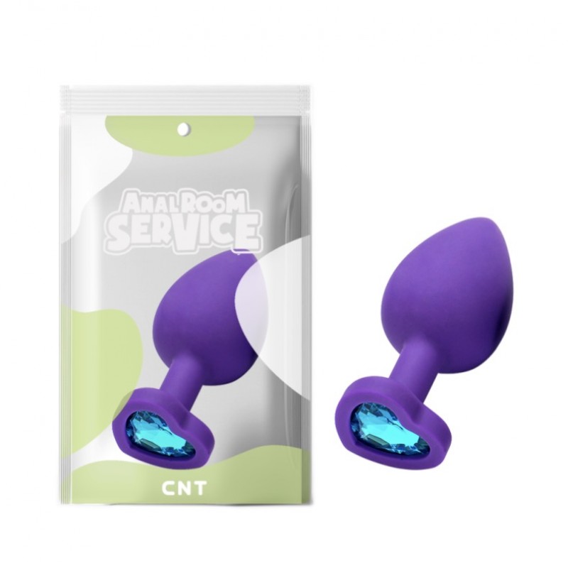 Анальная пробка силиконовая фиолетового цвета с голубым камушком в форме сердца Cnt Love Diamond размер Large